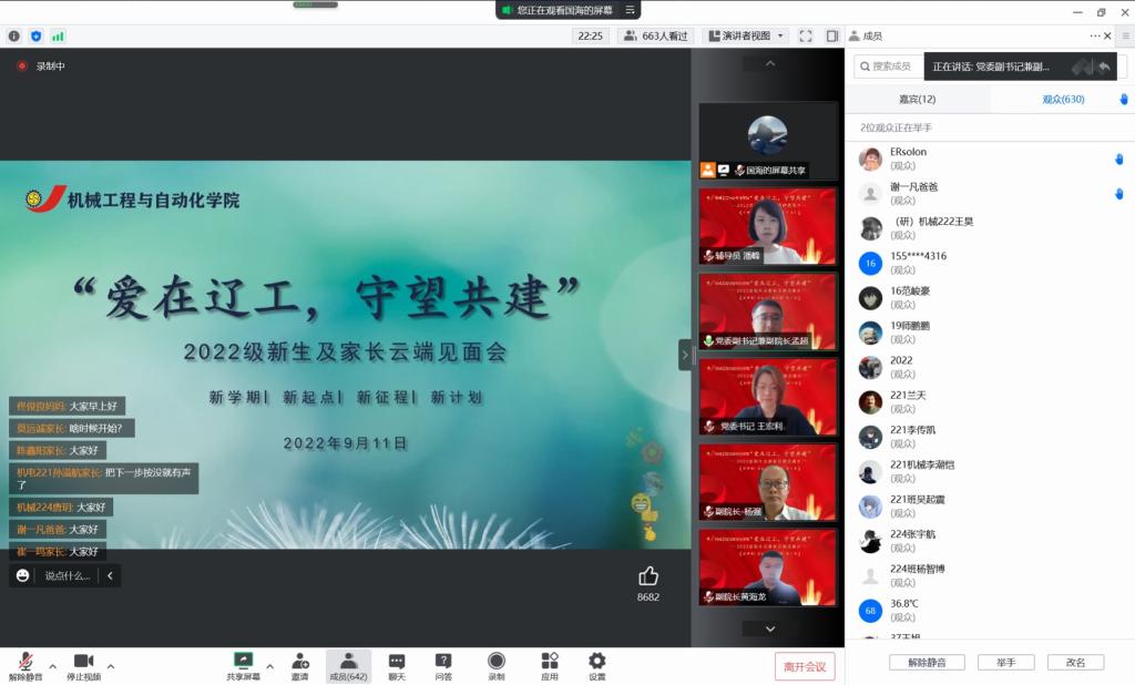 召开了“爱在辽工,守望共建”新生及家长云端见面会暨“喜迎二十大,奋进新征程”入学教育“第一课”。学院领导班子、各科室主任、新生班主任、辅导员、2022级新生及其家长们共同参与了会议。大会由学院党委副书记兼副院长孟超主持。