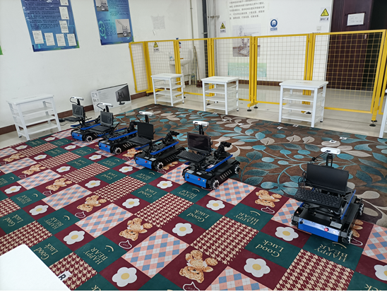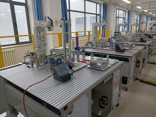 实验中心,实验室总面积390平方米。现有7套西门子S7-1200PLC、5套ABB工业机器人、1套协作机器人、1套并联机器人、5套移动机器人、15套高级机器人智能技术平台以及2套卓越机器人智能技术平台。