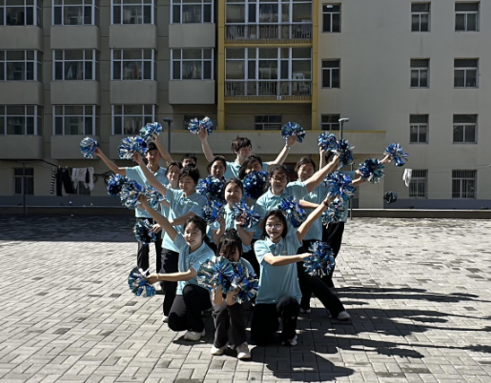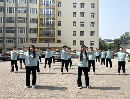 在北七寝室楼前举办了以“舞动青春,凝聚力量”为主题的团体操比赛决赛。