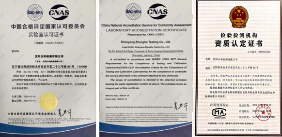 为进一步求专业性发展,研究所现与中辽检测(辽宁)有限公司建立合作关系,具备资质认定CMA和CNAS实验室认可相关资质: