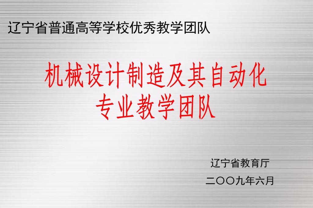 机械设计制造及其自动化专业始终坚持科学发展观,以服务社会为目标,成功地进行了专业结构的调整,教学工作取得了可喜的成绩。专业拥有省级精品课4门、省精品资源共享课4门;拥有省重点实验室、省高校重点实验室、省级实验教学示范中心各1个。近5年来,承担省级教改立项4项,承担校级教改立项18项;获省级教学成果二等奖3项;获省青年教师讲课比赛二等奖1项、三等奖1项;获国家微课比赛二等奖1项、省级微课比赛二等奖1项、三等奖1项;获省教育软件竞赛一等奖和优秀奖各1项;发表教改论文50多篇,主编国家“十一五”规划教材1部,主编教材9部;实习教材2部、实验教材2部,辅助教材18部。2009年,机械设计制造及其自动化专业教学团队被评为辽宁省普通高校省级优秀教学团队。
